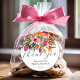 Sticker Rond Fleurs tropicales orange rose Script Merci
