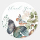 Fleurs vertes d'été romantiques avec papillon merci autocollants ronds avec nom personnalisable et texte pour des cadeaux élégants et chic!
