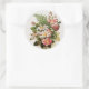 Jolie photo vintage de fleurs aux couleurs roses assorties est présentée sur cet autocollant rond. Utilisez pour cet envoi spécial, la réservation de ferraille ou la décoration pour Spring!