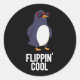 Sticker Rond Flippin Cool Funny Penguin Pun Dark BG