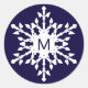 Sticker Rond Flocon de neige blanc monogrammé sur fond bleu mar
