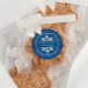 De la cuisine d'autocollant pour vos produits de Noël cuits au four. Un autocollant rond en bleu et blanc pour la cuisson de Noël. Texte courbe bleu autour d'un flocon de neige blanc. Ajoutez votre nom.