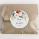Cet autocollant rond blanc bordeaux doré classique et floral est parfait pour une réception de mariage rustique. Le design se compose de fleurs blanches, bordeaux et dorées et de baies au feuillage vert disposées en bouquets élégants.