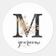 Sticker Rond Floral Monogramme M Flora d'or noir