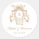 Sticker Rond Floral Rose Crest Mariage Monogramme