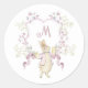 Sticker Rond Floral rose Pierre le lapin Monogramme Baby shower
