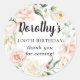 Des roses douces et des bourgeons roses et roses forment une couronne fleurie magnifiquement rustique. Le nom de la femme d'anniversaire est écrit en gros caractères. 90e anniversaire et le sentiment de remerciement vous suivent. Cet autocollant d'anniversaire fait partie de la collection 100th Birthday Rose Rose Floral. Il contient de nombreux modèles do-it-yourself qui vous permettent de créer rapidement des invitations et des fournitures de fête. Vous devriez voir un lien vers la collection sur cette page. Si vous ne voyez pas le lien ou si vous avez besoin d'aide avec un article, veuillez me contacter.