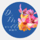 Sticker Rond Floraux lumineux Monogramme bleu Mariage