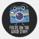Sticker Rond Focus Sur Les Bonnes Choses Positive Pun Dark BG