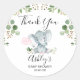Merci Foliage Elephant Baby shower Favor Sticker baby shower doux éléphant avec un éléphant aquarelle, ballons roses et feuillage. Cet autocollant de baby shower à thème d'éléphant est idéal pour un baby shower à thème d'éléphant pour petite fille.