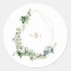 Sticker Rond Foliage & Or Monogramme Blanc Mariage élégant