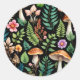 L'oeuvre de Mushroomcore présente la flore forestière et les champignons dans un style motif contre un arrière - plan noir. Fleurs fleuries, fougères, champignons de tabouret, et plus dans les tons vert, marron, orange, rose et violet, dans l'ensemble côté plus chaud. Cottagecore foncé ou goblincore esthétique.