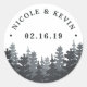 Des autocollants rustiques chic pour votre extérieur, des bois ou des mariages d'hiver aventureux comprennent une forêt de pins bleus et gris riches avec votre nom et date mariage en lettres de bloc.