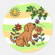 Sticker rond Fox Red Labrador et Green Classic pour les fans du Labrador! Décor de dessin animé coloré et mignon Fox Red Labrador Retriever avec fleurs. Adorable chiot Fox Red Labrador assis dans le jardin avec des fleurs et des plantes verts. Caricature de chien de Labrador Retriever, fantastique et amusante, créée par Naomi Ochiai du Japon.