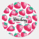 Sticker Rond Fraise rose sur arrière - plan blanc