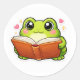 Sticker Rond Frog Reading A Book