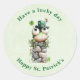 Sticker Rond Frog with Green Hat and Shamrock St. Patrick's Day