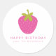Sticker classique rond à fraise rose Fruit personnalisé Anniversaire