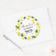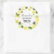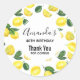 Fête merci autocollants avec un mignon motif de citrons jaunes avec des feuilles verts et des tranches de citron fraîchement coupé. Un cercle blanc superposé avec votre texte à l'intérieur.