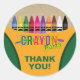 Stickers Crayon Party. Conçu avec une boîte de style crayon et un arc-en-ciel coloré de crayons. D'autres articles de fête de crayon sont disponibles sur Metro-Event.com et Metro-Events sur Zazzle.