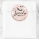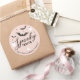 Fun éffrayant traite l'autocollant Halloween. Parfait pour ajouter à vos sacs de faveur de fête d'Halloween. Notre design comprend des chauves-souris et des fantômes amusants ainsi qu'une Personnaliser typographique amusante "Traitements Éffrayants" avec votre nom. Conçu par Moodthology Papery