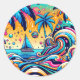 Sticker Rond Fun Whimsic Psychedelic Voilier
