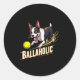 Sticker Rond Funny Ballaholic Boston Terrier Dog Chasing Bostie