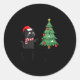 Sticker Rond Funny Black Cat Pushing Christmas Tree Over Cat Wh