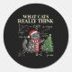Sticker Rond Funny Black Cat Pushing Xmas Tree Over Cats Physic