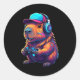 Sticker Rond Funny Capybara Gamer Gaming Video Games Capybara