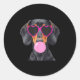 Sticker Rond Funny Dachshund Wearing Gles And Blowing Nk Bubble