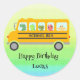 Sticker Rond Funny école de dinosaures Bus fête d'anniversaire