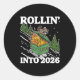 Sticker Rond Funny Feral Raccoon Rollin' Into 2026 Happy New Ye