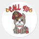 Sticker Rond Funny Grey dog est un pompier