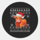 Sticker Rond Funny Highland Cow Ugly Christmas Sweater Santa Xm