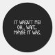 Sticker Rond Funny, It Wasn't Me . Sarcastic Joke Tee