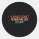 Sticker Rond Funny Please Don't Make Me Do Stuff