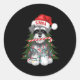 Sticker Rond Funny Puppy Dog Christmas Holiday With Candy Cane