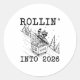 Sticker Rond Funny Raccoon 2026 Snarky New Year, Rollin' 2025 I