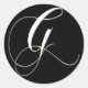 G monogramme avec un arrière - plan noir, écriture blanche initiale et bordure argent. Un autocollant parfait pour vos enveloppes mariages, sacs cadeaux ou autres décors pour votre mariage élégant.