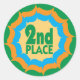 Second Place Ribbon Winner bouton ou autocollant en vert, bleu et orange pour un prix ou un prix du concours. Voir aussi les modèles correspondants FirstPlace Ribbon Winner et Third Place Ribbon Winner dans le même magasin.