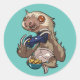 Sticker Rond Gamer Sloth Manger des nachos en sous-vêtements