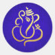 Sticker Rond Ganesha Festif Or | Dieu Indien Damassé Bleu