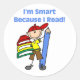 Un garçon en bâton portant un casquette de baseball rouge tient une pile de livres et un grand crayon bleu, et le texte bleu dit "Je suis intelligent parce que je lis !". Ce thème de lecture mignon T-shirt, sac fourre-tout, mug, mousepad, autocollants, boutons, et d'autres articles promeut la lecture chez les enfants!