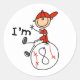 Les garçons qui aiment le baseball et les figurines de bâton vont adorer ce joli modèle de bâton de joueur de baseball sur T-shirts, tasses, mousepads, boutons, sacs, et plus ! Un garçon de baseball dans un casquette rouge et uniforme se repose contre un gros baseball et dit : "J'ai 8 ans" ! Ces objets de base-ball I'm 8 sont de grands cadeaux d'anniversaire et peuvent être utilisés toute l'année!