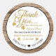 Élégantes étaler l'amour pas les germes mariage favorisent les autocollants pour les gélifiants pour les mains personnalisés. Rustique bois mariage merci autocollants avec typographie merci or et cœurs dorés. Personnalisez avec les noms des mariés et la date du mariage.