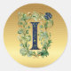 Sticker Rond Généré par l'IA florale de Monogramme I