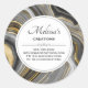Autocollants professionnels personnalisés. Conçu avec un design abstrait avec un motif minéral géologique agate. L'or, le gris, le blanc et le noir tourbillonnent ensemble formant d'élégantes vagues de couleur. Parfait pour transmettre un air de classe et d'élégance. Un cercle blanc avec une fine bordure grise superposée avec votre texte à l'intérieur.