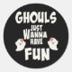 Entrez dans l'esprit éffrayant avec cet autocollant amusant et ludique avec l'expression "Ghouls Just Wanna Have Fun" à côté de deux fantômes adorables. Parfait pour Halloween ou toute personne qui aime les autocollants mignons et décalés, ce design ajoute une touche d'humour,