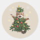 Sticker Rond Ginger Orange Chat Noël Arbre de Noël mignonne Noë